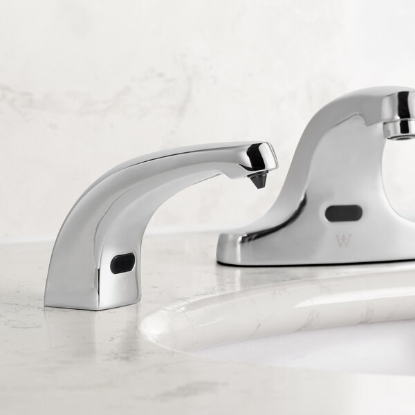 Enhance the cleanliness and efficiency of your commercial restroom with the Waterloo automatic deck-mounted squared chrome soap dispenser with liquid spout. Crafted with durable brass shank construction, this soap dispenser is built to withstand frequent use in high-traffic environments. The hands-free automatic design promotes hygiene by minimizing contact with the dispenser, reducing the spread of germs. Its sleek chrome finish adds a modern touch to any restroom decor, while the included AC adapter, control module, and refill bottle make installation and maintenance a breeze.