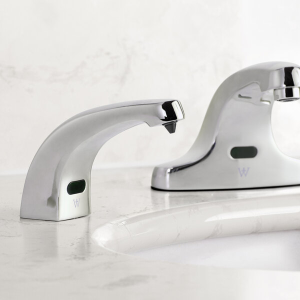 Enhance the cleanliness and efficiency of your commercial restroom with the Waterloo automatic deck-mounted squared chrome soap dispenser with foam spout. Crafted with durable brass shank construction, this soap dispenser is built to withstand frequent use in high-traffic environments. The hands-free automatic design promotes hygiene by minimizing contact with the dispenser, reducing the spread of germs. Its sleek chrome finish adds a modern touch to any restroom decor, while the included AC adapter, control module, and refill bottle make installation and maintenance a breeze.