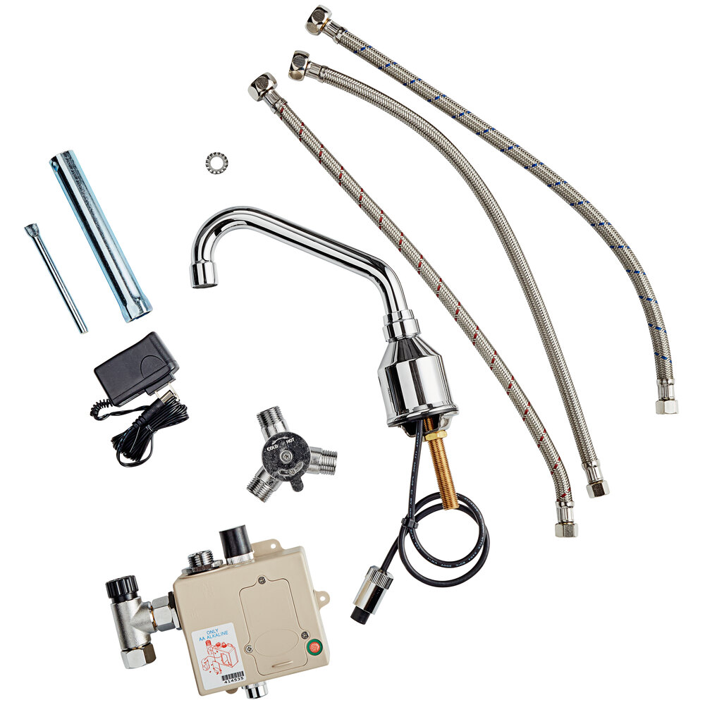 The UL certified AC adapter with a Level VI efficiency rating is included to provide power for the faucet's control module, which installs below the countertop and connects to the faucet with an 18" flexible supply line. Or, you can also use (4) AA batteries if an outlet isn't convenient, and to provide backup power in case of an outage. A mixing valve also allows you to easily set the output temperature to the desired level. This prevents burned hands from water that is too hot, while still ensuring that the water is warm enough for users to effectively wash their hands. A pair of 18" flexible stainless steel connectors with 1/2" NPSM female x 3/8" female compression fittings connect the mixing valve to your building's water lines.