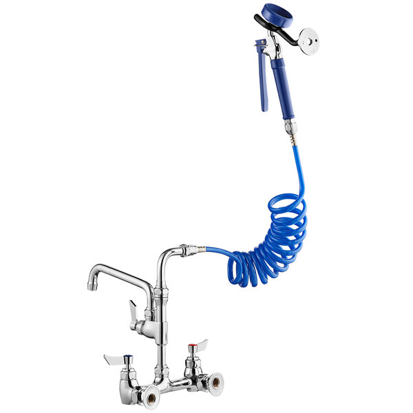 2.6 GPM Wall-Mounted Pet Grooming / Utility Faucet with 8" Centers, 9' Coiled Hose, and 8" Add-On Faucet